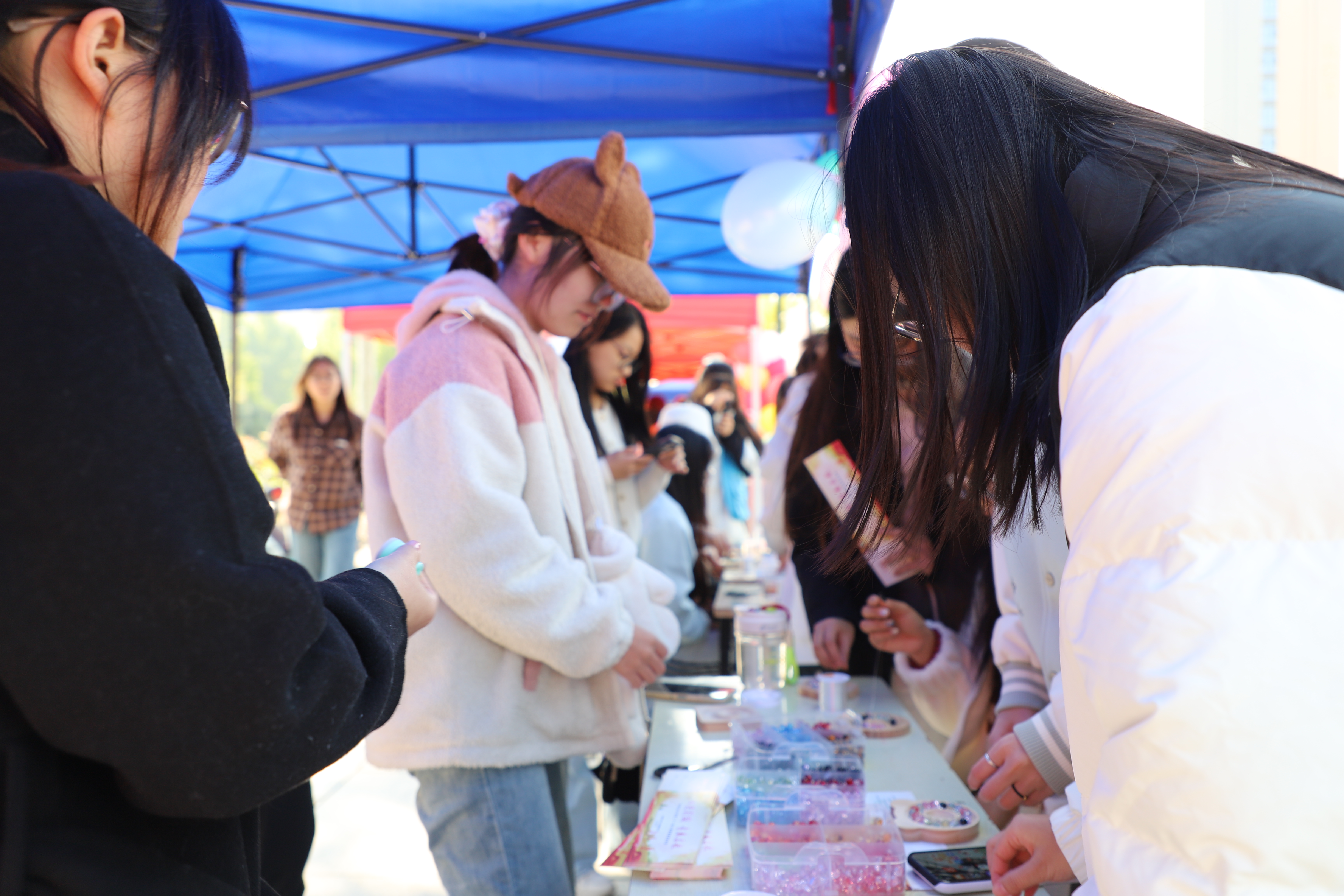 活动现场,园艺学子热情高涨,在各个项目中展现出积极向上的精神风貌。在 “请留下你的笑脸” 打卡处,同学们手持彩色马克笔,精心绘制专属笑脸图案,一张张充满活力的笑脸最终拼凑成温暖人心的 “微笑墙”,成为现场一道亮丽的风景线;“浮彩绘心,漆扇传情” 摊位前,大家以扇为纸,通过转印技术创作独一无二的艺术作品,在动手过程中释放情绪、舒缓压力;“穿越电网” 游戏里,参与者全神贯注手持金属环穿越迷宫,在一次次尝试与调整中锻炼专注力,成功突破时的成就感溢于言表。