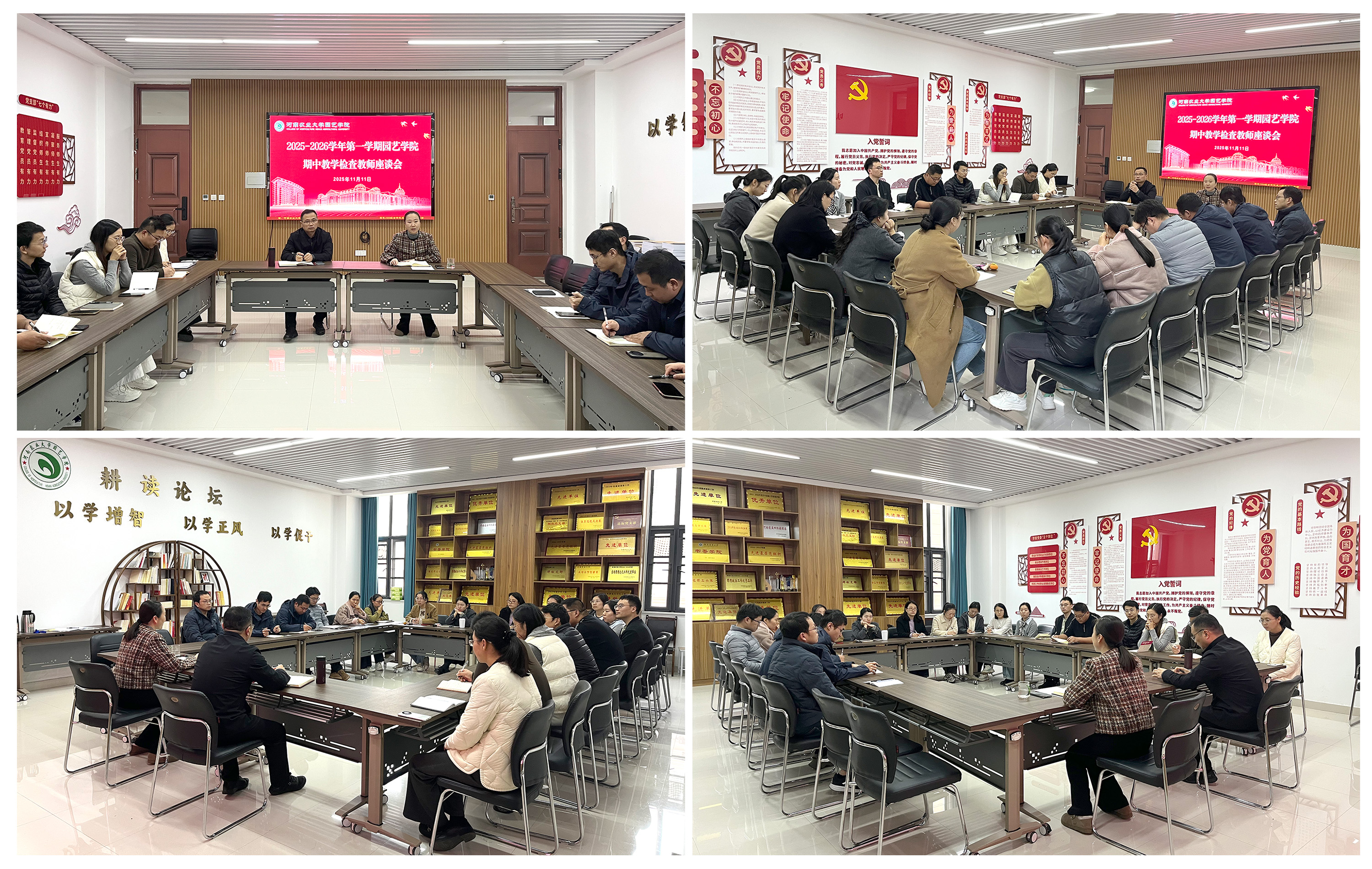 在力行楼北211会议室召开2025-2026学年第一学期期中教学检查教师座谈会,院长胡建斌、副院长谭彬、教学督导孙凯乐及各系教师代表参加座谈,会议由谭彬主持。