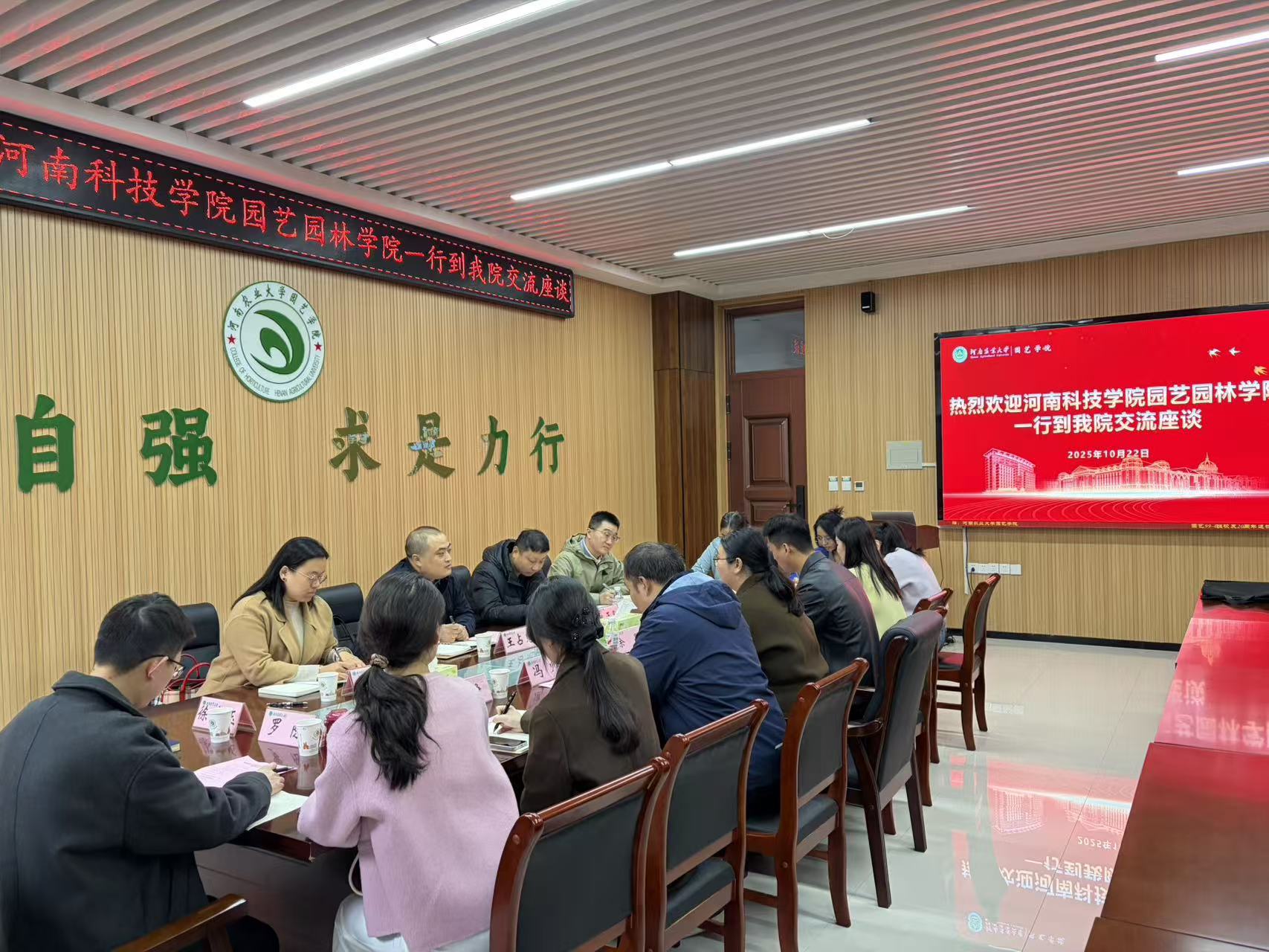 与河南科技学院园艺园林学院交流座谈会在龙子湖校区力行楼北 215 会议室成功举办。河南科技学院园艺园林学院党委副书记、纪委书记、工会主席王占魁带队,研究生秘书姚正阳、团委书记刘璐等一行 4 人出席交流;美女做爱