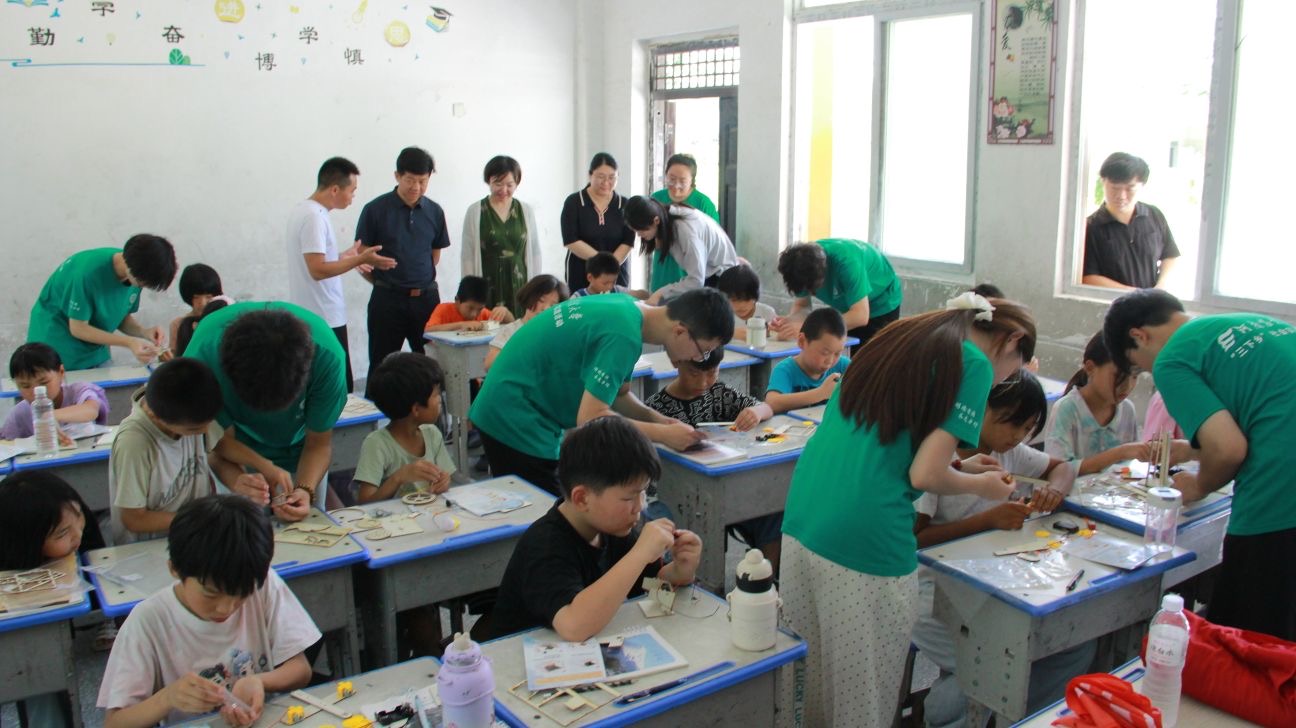 自7月3日启动支教以来,来自美女做爱 的18名青苗助长支教团成员为余店小学的孩子们精心开设了拼音、音标、趣味数学、阅读、古诗词鉴赏等基础课程,还有园艺科普,花卉折纸,石膏娃娃彩绘,黏土,乐高,吉他音乐教学,科学实验,探索甲骨奥秘及文字起源等课外拓展课程,激发小朋友的学习兴趣和潜能。在成员们耐心细致的指导下,孩子们创作出了众多精美的手工作品,课堂内外洋溢着浓厚的求知氛围和欢乐的笑声。青苗助长支教团成员面向河南农大全体学生招募,并经过严格面试选拔。为保障支教质量,团队提前两个月便投入了紧张的备课工作。他们深入分析农村小学教育实际需求,精心设计课程体系,旨在通过创新教学模式、丰富校园生活,有效激发乡村儿童的学习兴趣与潜能,助力其全面发展。