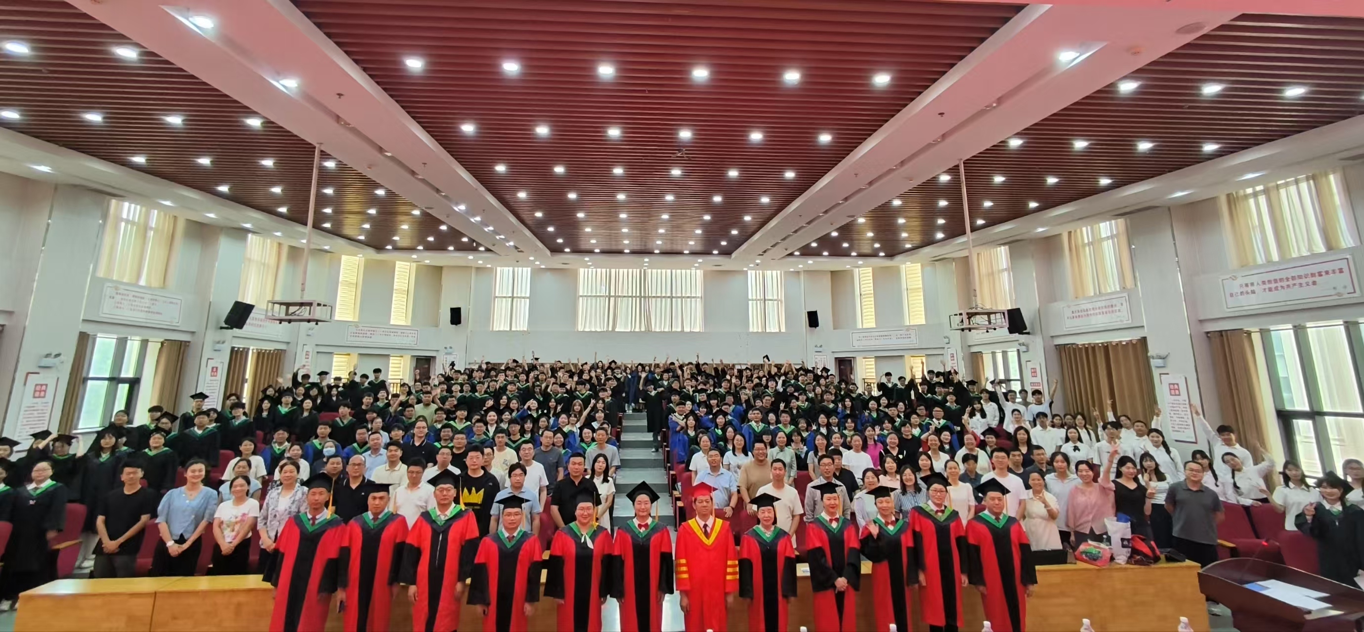 在学位授予环节,身着学位服的毕业生们满怀激动,依次上台。学院领导班子及学位委员会成员为他们扶正流苏、授予学位并合影留念。标志学业圆满完成,也意味着毕业生即将开启人生新征程。