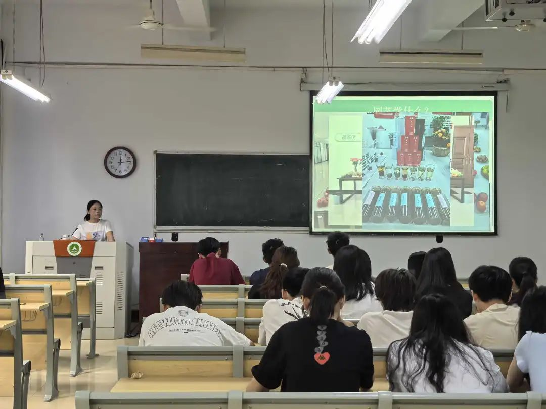 讲座伊始,李丽丽以其所带过的一届学生的实习经历为切入点,与学生们分享了那段难忘的时光,激发了学生们内心对园艺实习的热爱。紧接着,她以种子破土、萌发到成长的自然过程类比学生的人生成长轨迹,启发学生们要脚踏实地走好每一步。同时,李丽丽围绕“园艺学什么”展开论述,她详细介绍园艺学及分流的三个专业的核心课程,让学生们对学科的发展路径形成更清晰的认知。随后,李丽丽以本硕博连读的亲身经历为脉络,深入浅出地讲解了相关的研究。