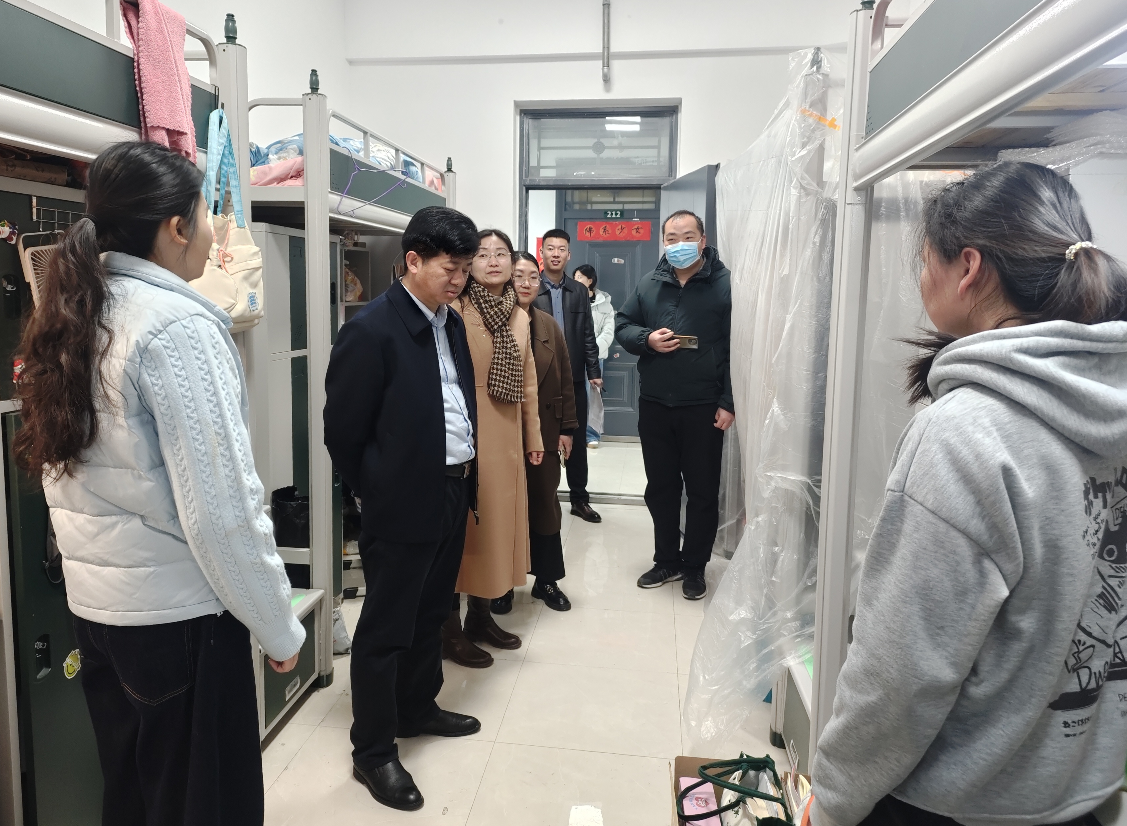 党委书记秦素玲、院长郑先波、院党委副书记余果、副院长谭彬及团委辅导员一行深入学生宿舍,走访慰问返校学生,为他们送去新学期的关怀与问候。
