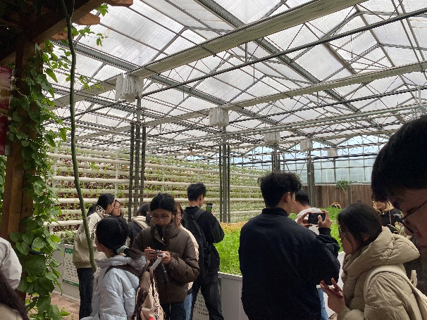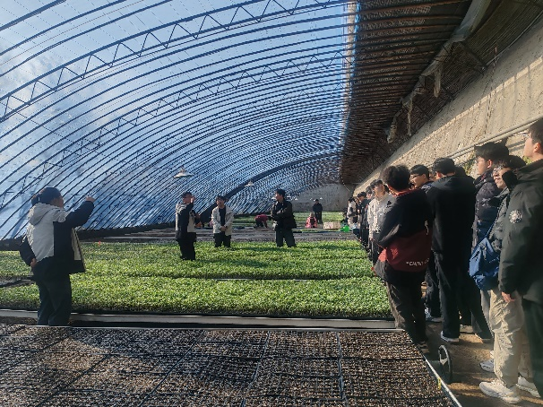 下午,师生们来到河南农大扶沟蔬菜研究院。研究院内,智能化连栋大棚、日光温室和外保温塑料大棚错落有致,各种蔬菜瓜果长势喜人。在玻璃连栋温室内,学生们亲眼目睹了不同模式的无土栽培,以及多种多样的栽培品种,深刻体会到了现代农业技术的先进性与实用性。研究院的工作人员还详细讲解了农业园区的布局与运营管理方式,让学生们对农业园区的规划与管理有了更加直观和深入的理解。