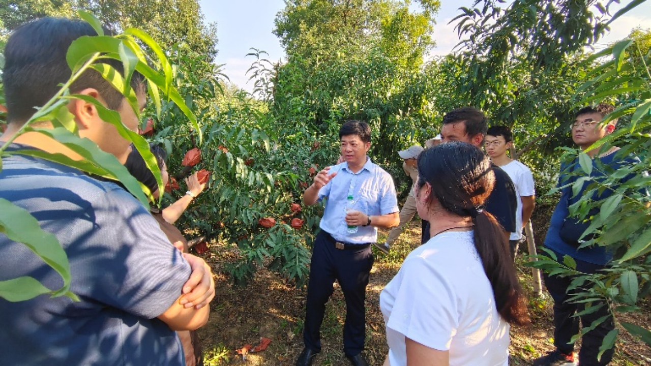 22日下午果树系教工党员赴鲁山县林丰庄园桃树基地和蔡庄村万亩梨园,现场就高温高湿条件下桃树的流胶病和天牛的防治、梨树的炭疽病的防治、土肥水管理以及果实的采后处理等进行了技术服务与指导。