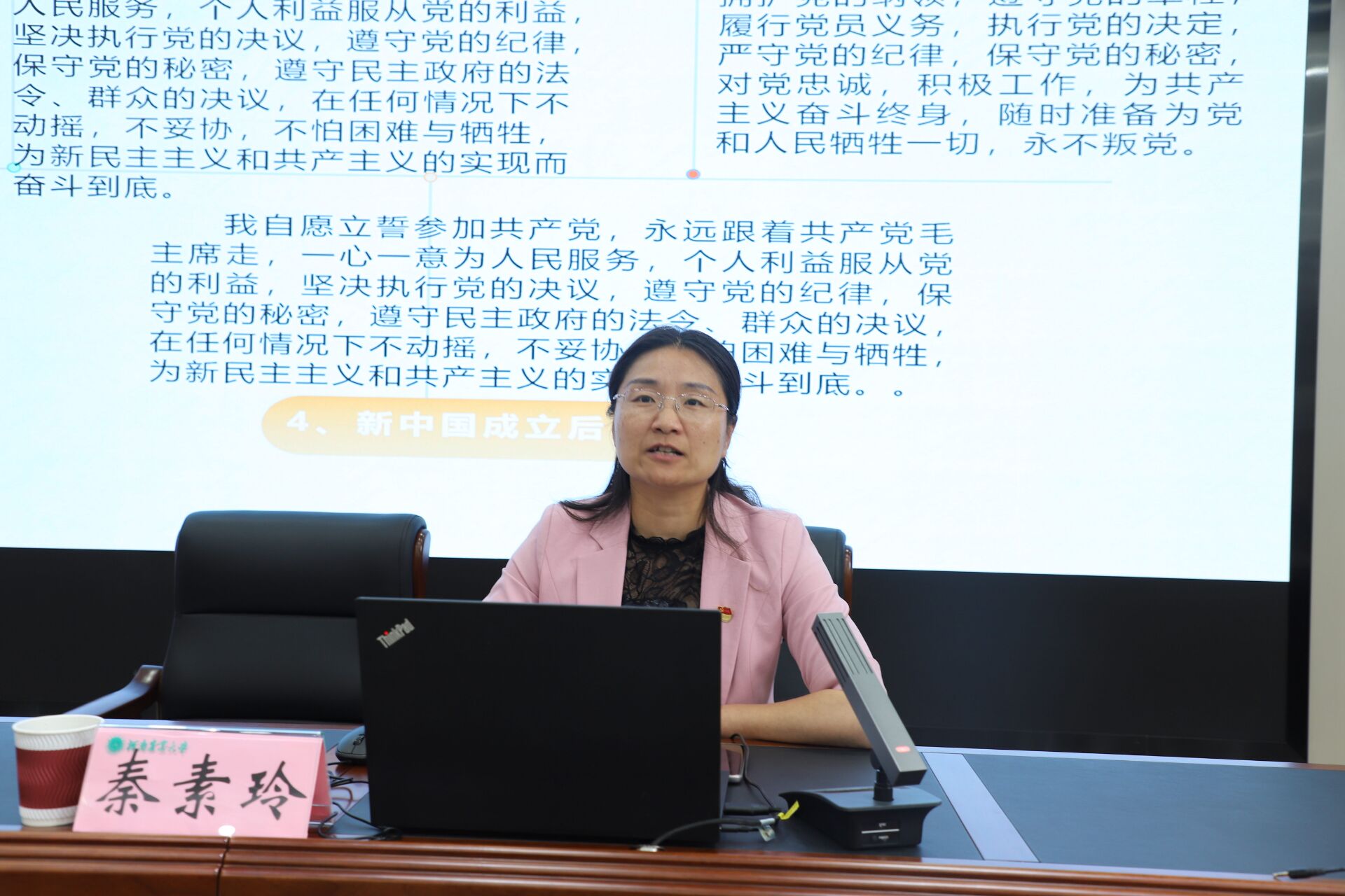随后,秦素玲带领全体党员重温入党誓词,铭记初心,砥砺奋斗。本次活动有助于全体毕业生党员在今后的学习和工作中树立远大理想,勇敢顽强拼搏,让青春在社会主义现代化建设的征程中绽放绚丽之花。