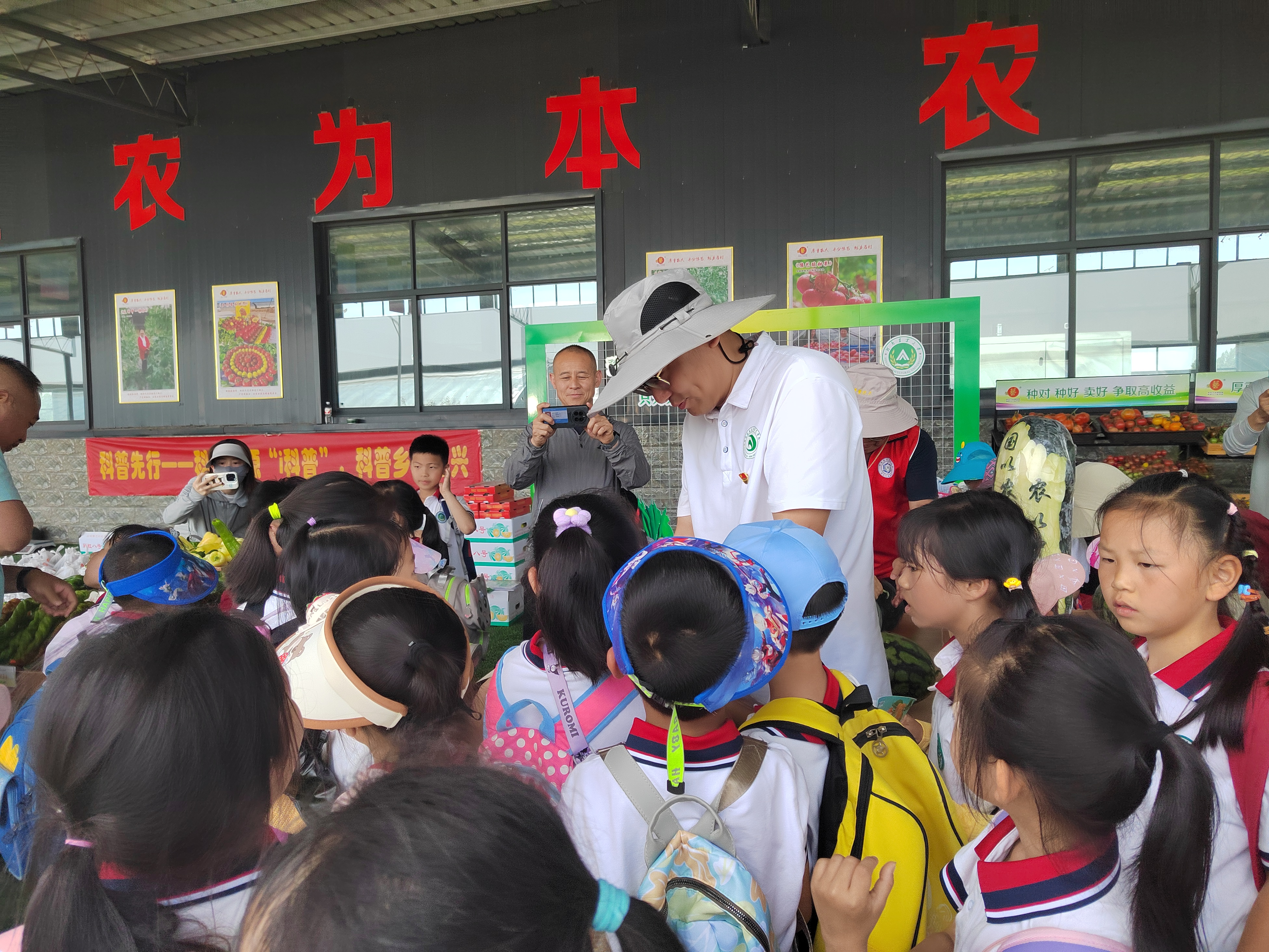 活动期间,老师们一方面协助带领小农宝们排队进棚,另一方面向小农宝们展示现代农业科技以及西瓜、甜瓜、南瓜和番茄等蔬菜科技种植成果,并带领小农宝们一起品尝优质西瓜和番茄。附中教工第三党支部书记孟江涛代表支部表达了对蔬菜系教工党支部的欢迎和感谢。