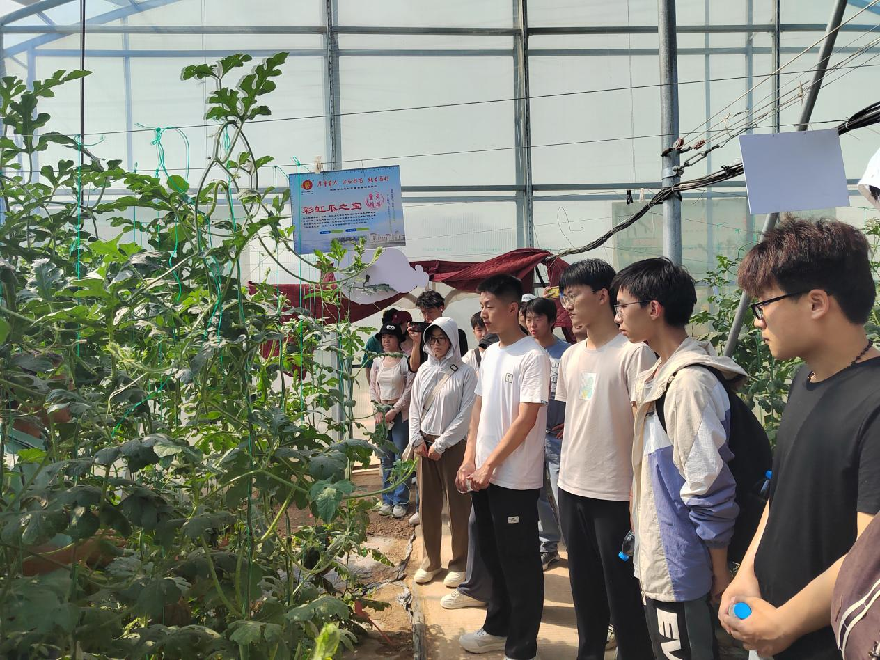 与马村区政府联手打造的优质果蔬科教园区。在园区工作人员的带领下,学生们依次参观了西瓜、辣椒、甜瓜、番茄等特色品种示范区,从形态各异、颜色缤纷的果实,到独特的口感和风味,每一种蔬菜水果都拥有着自己独特的魅力。其品种琳琅满目,产量丰硕喜人,充分展现了现代农业的繁荣与活力。