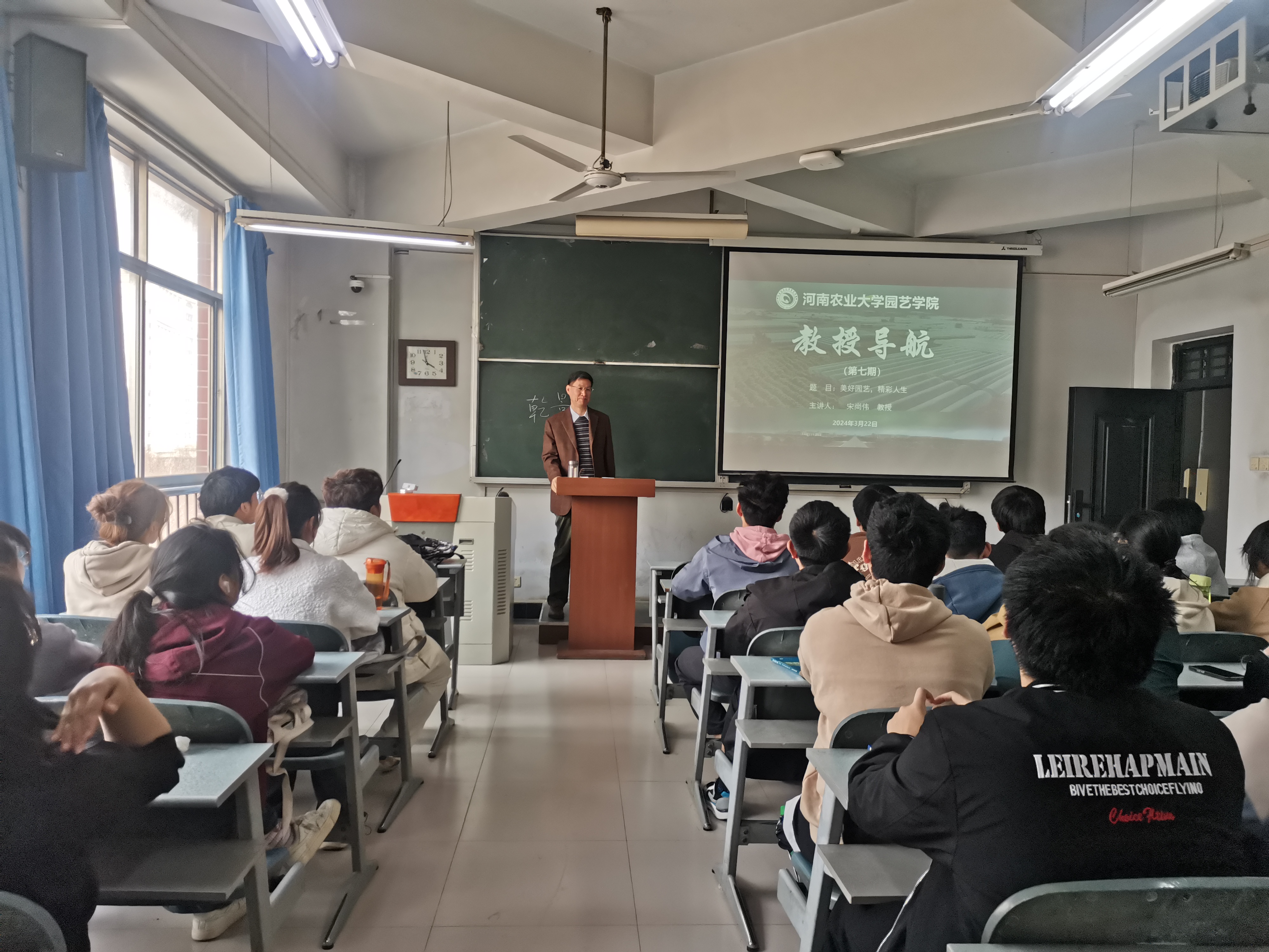 第七期教授导航活动顺利开展,由我院宋尚伟教授为园艺类23-10班做“学好园艺,开启精彩人生”的主题交流讲座。