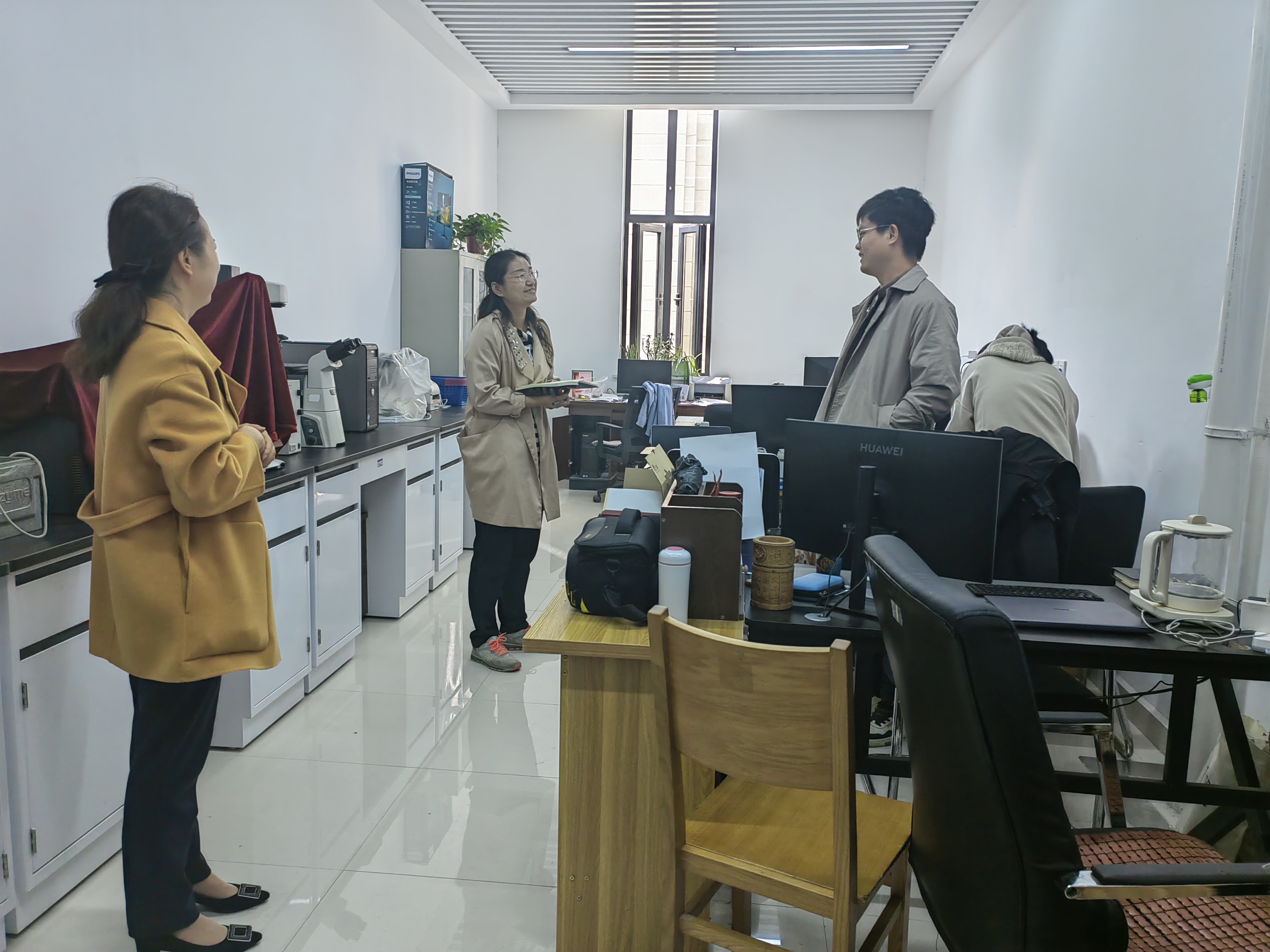 检查小组从二楼平台实验室出发,逐间逐块儿进行检查。每到一处,发现问题即时指出,现场能整改的问题立行立改,现场不能立即解决的问题由现场跟随的各实验室负责人当时一一记录,随后建立台账,逐一落实,限期整改。最后,秦书记对各实验室负责人提出要求:一是实验室的仪器应规范使用,建立使用登记本,做好完备的记录;二是实验药品应贴好标签,使用完成后及时放回原位;三是提醒研究生注意实验室安全,防护手套、实验服等务必穿戴整齐;四是实验室旁边应该有仪器使用说明及注意事项,确保仪器使用安全规范;五是实验室卫生要全面彻底,门窗上、仪器背后、柜子内侧等死角也整理到位。