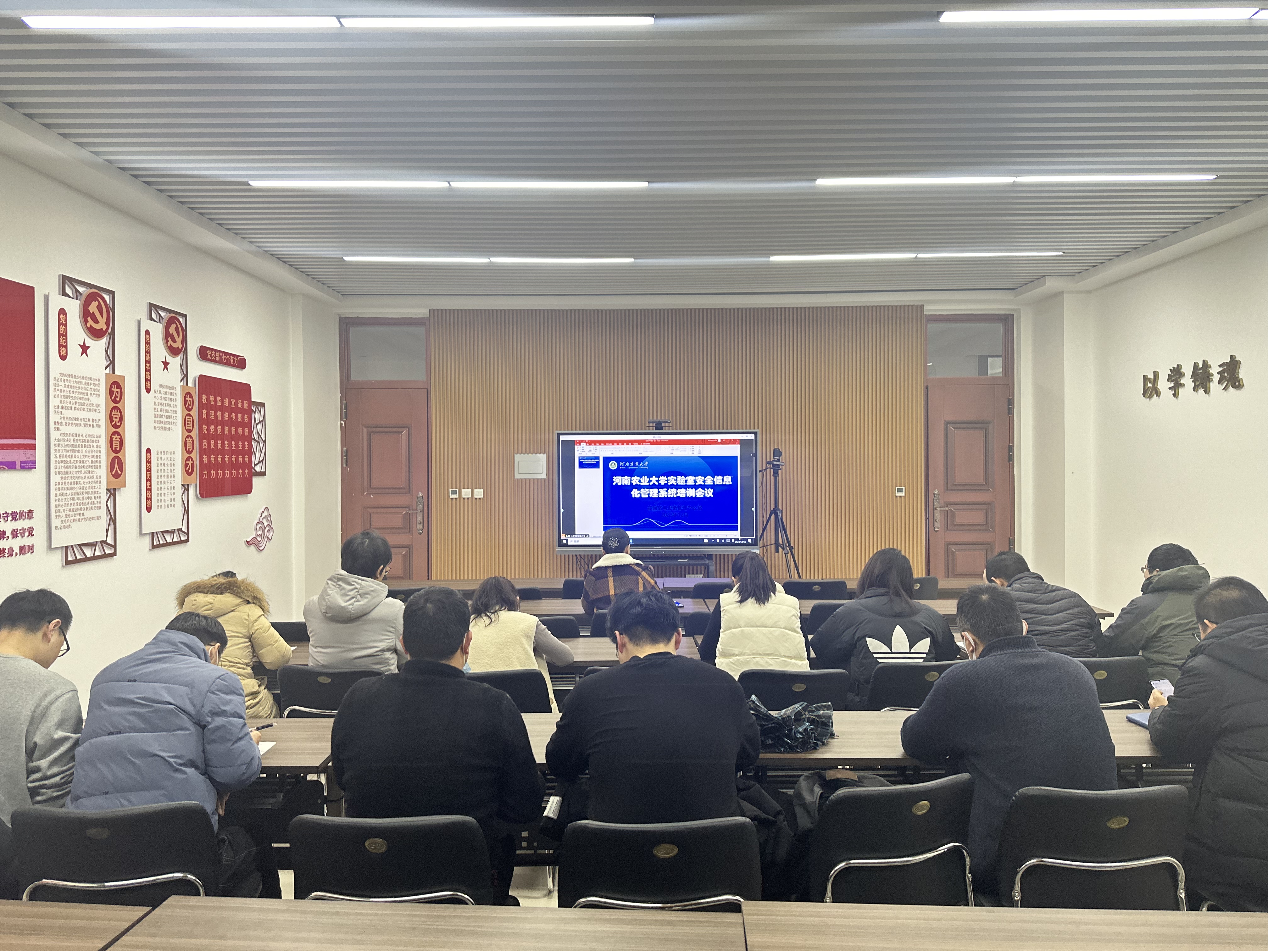 关于开展岁末年初安全隐患排查整治和督导检查工作的通知》和学校校园安全暨防范应对低温雨雪冰冻灾害工作会议的要求,我院于12月15日在龙子湖校区第二实验楼北215召开安全工作安排部署会议,并在北211多媒体会议室通过视频的方式集中进行“实验室安全信息化管理系统培训”。院班子全体成员、全体中层干部以及各系室实验室负责人分别参加了会议和培训,会议由院党委书记秦素玲主持。
