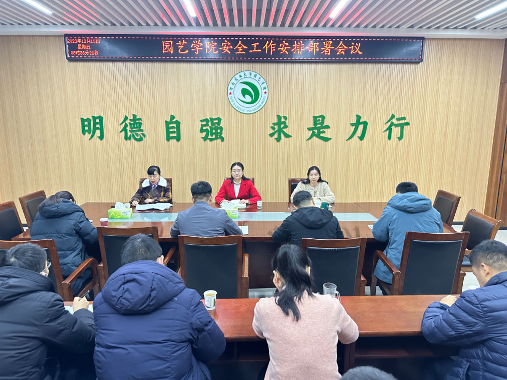 副院长陈广辉对学院开展岁末年初安全隐患排查整治和督导检查工作进行了安排和部署。重点强调了消防、交通、实践实训、预防诈骗、实验室及危化品等方面的安全工作,以山西吕梁“11.6”重大火灾事故为案例,强调学院安全“三防”建设和“三全”管控的重要性,着重提醒严寒冰冻天气的交通和即将进行的冬剪实习实训以及实验室的各项安全,并指出学院已经成立由院领导、中层正职组成的寒潮大风天气的应急领导小组和应急办公室,安排了24小时值班,要求各位负责人做好各自分管领域的巡查和监管,做好师生的安全提醒和应急处置,如有紧急情况及时上报,确保信息传递通畅;要求大家务必要以时时放心不下的责任感,以事不过夜的责任心,以“一失万无”的高度警惕,守住“万无一失”的底线,希望学院安全人人都来关注、事事有人操心。