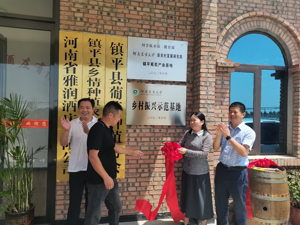 与雅润酒庄签署了镇平葡萄产业基地共建协议。最后,在大家的见证下,学校王春丽副处长与雅润酒庄张总共同为基地揭牌。