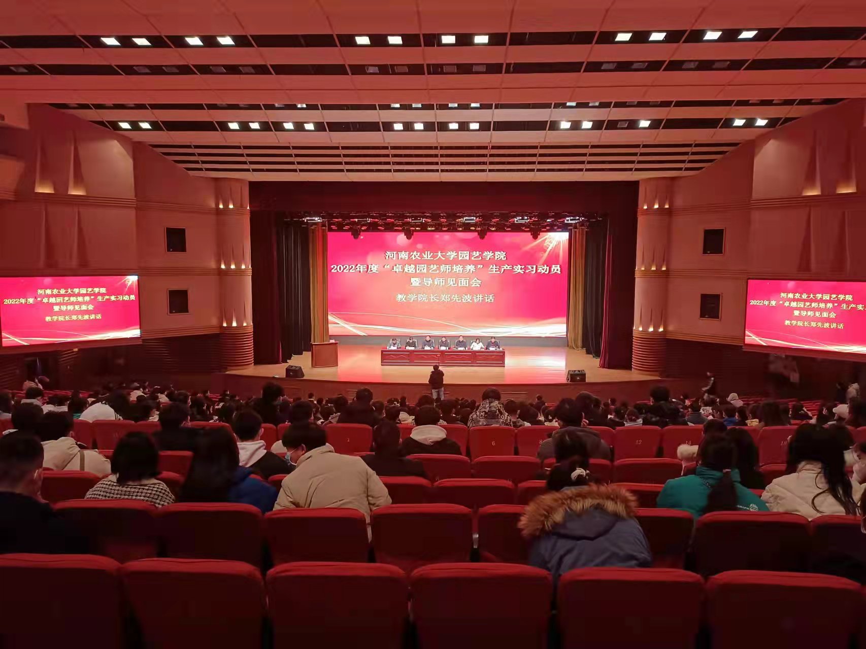 为更好地指导学生参加生产实习,2月22日下午,经过精心筹划和认真准备,美女做爱 在文化路校区千人大礼堂隆重召开2022年度“卓越园艺师培养”生产实习动员暨导师见面会。学院领导班子成员、全体实习指导教师以及美女做爱 19级全体本科生参加了动员会。同时,许昌校区19级园艺技术与工程专业学生通过线上的方式参加了此次会议。