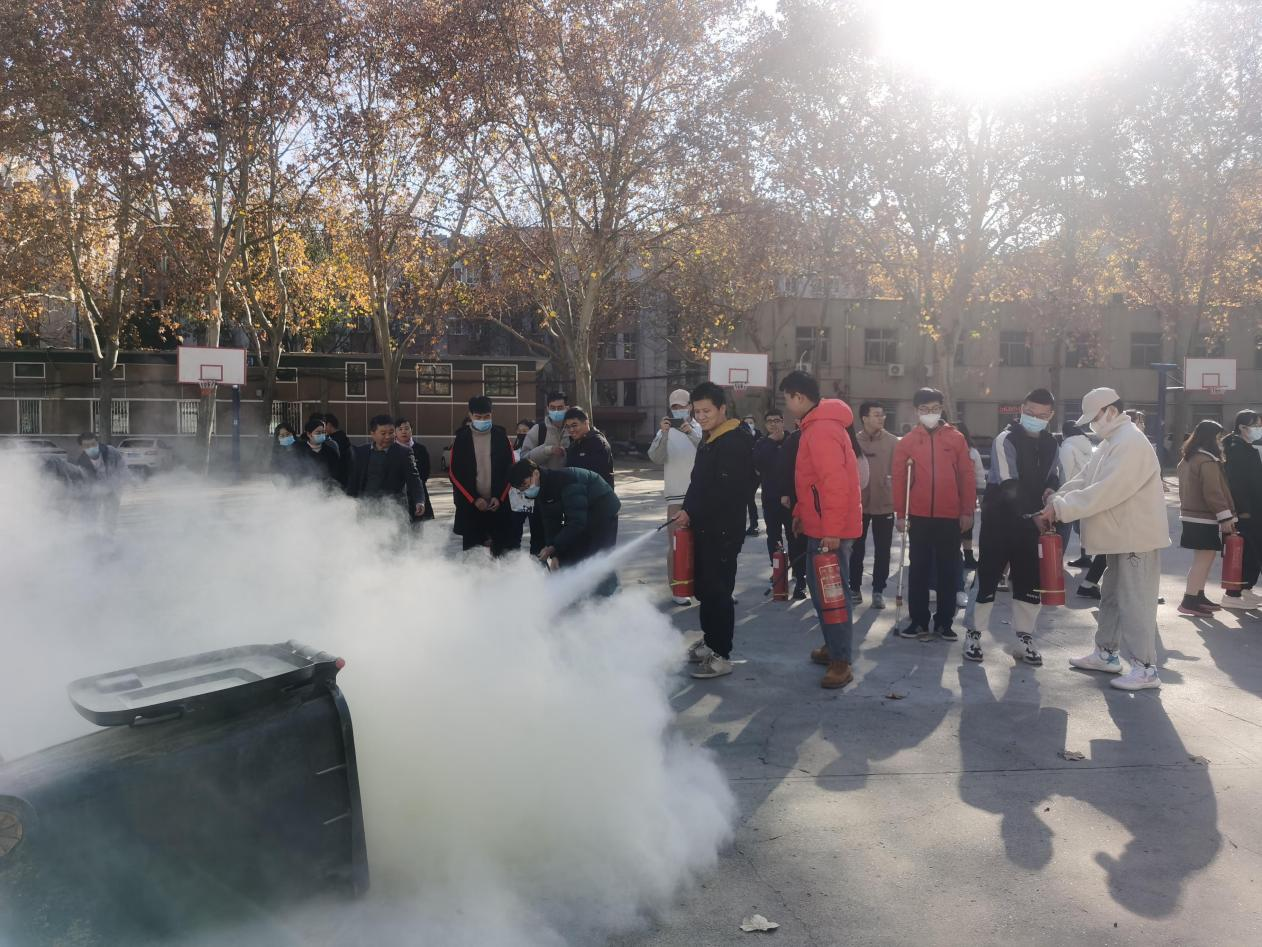 在文化路校区东边篮球场开展了消防演练暨实验室安全责任书签订活动,对2021级研究生新生进行了一场消防安全和实验室安全的专场教育,该项活动由学院办公室和中心实验室联合举办,副院长陈广辉、研究生班主任以及2021级研究生参加活动。