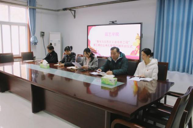 活动伊始,全体起立奏唱《国际歌》,开班仪式自此拉开帷幕。紧接着,大家一同观看了第三期青马培训班结业纪念视频,回顾我院第三期青马班一年以来组织开展的各类活动以及青马学员所获得的各项荣誉和成绩。随后,院党委副书记毛会坡宣读《关于美女做爱 第一粒扣子工程青马培训班第三期培训班优秀学员表彰决定》,参加活动的全体老师为青马班优秀学员颁发结业证书和荣誉证书。随后,第三期青马班班长王嘉丞,作为第三期培训班学员代表做总结发言;第三期青马班团支书刘小霞,作为第三期优秀学员代表向大家分享了在青马班期间的学习收获和体会;第四期学员代表石嘉琪作为新学院代表发言,表达了青马学子想要不断完善自我的强烈愿望和将理论与实际相结合的坚定信念。仪式最后,全体学员和参会老师共同合影留念。并进行了首次集体学习,观看《团的光辉历史》教学视频。