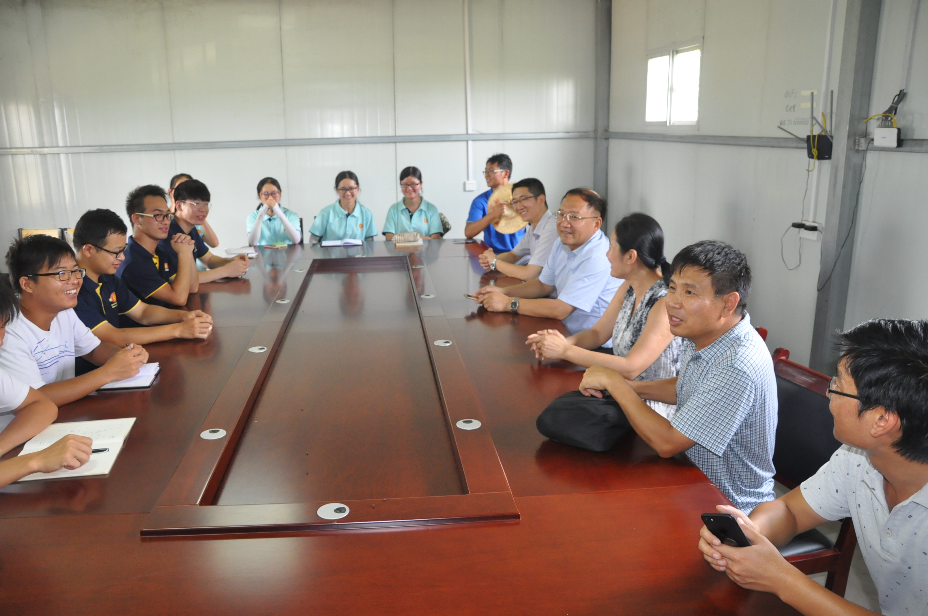 院领导亲切问候学生们的生活条件,并带去烧鸡和烤鸭以及水果,为同学们解暑、改善伙食。随后,院领导同各位暑期实践同学开展了座谈会,同学们分别谈论近期工作和生活的心得体会,耿书记表示:同学们能从辛苦的工作中,有这么多深刻的感悟,他很欣慰。在这段时间里,大家能有收获,有提高,很难得。能做到理论与实践结合,才会更好的解决问题。社会实践的主旨就是学知识、长才干、做贡献,提高整体的能力和水平,实现自身价值。希望同学们继续努力,坚持到底。并嘱咐大家,注意人身安全,遵守园区的纪律,注意水电安全;注意防暑降温,多喝水;注意饮食安全卫生,防止发生胃肠疾病;注意交通安全。