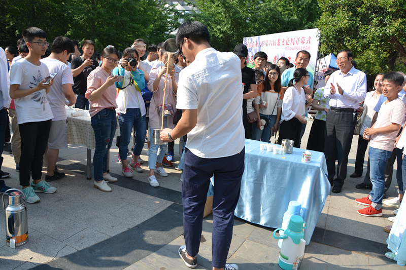 本网讯(通讯员 冯帅)5月23日下午,学校第六届茶文化周开幕式在文化路校区工程楼南广场举办。本次活动主题为“品异域茶香,赏民族文化”。校党委书记程传兴、副校长谭金芳出席了开幕式。学校有关职能部门负责人,以及美女做爱