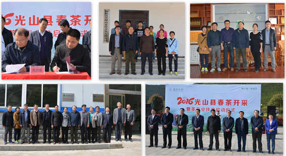 党委书记耿超明、副书记侯亚兵及茶学专业教师刘建军副教授、梁丽云博士一行赴光山县,参加了由光山县茶产业办公室组织、河南蓝天茶业公司承办的”2016光山县春茶开采及茶产业扶贫启动仪式”。并调研了河南蓝天茶业公司基本情况,考察了该公司的生产车间,了解该公司的产品,就进一步加强我院与公司的合作进行了洽谈。