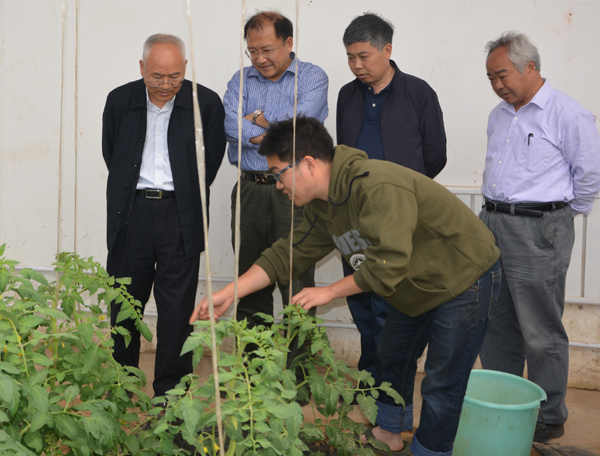 副院长孙治强、副院长马长生、校特聘教授杨路明等分别带领谭校长一行视察了我院育苗温室和无土栽培实验温室,查看了番茄、黄瓜、辣椒、甜瓜和西葫芦育种实验大棚。谭金芳对我院基地建设工作给予了肯定,对一些先进技术的使用表示赞赏,同时也对一些实验设计和新技术的使用提出了建设性意见和可行性建议。在视察我院校特聘教授杨路明的西甜瓜种质资源收集与创新的实验大棚时,谭金芳仔细倾听了杨教授对来自45个国家的黄瓜种质资源特性介绍与创新实验设计,详细地询问了下一步研究计划,并通过对其劳动的充分肯定鼓励其不懈攀登,为冲刺更高层次人才和取得更高水平科研成果而努力拼搏。