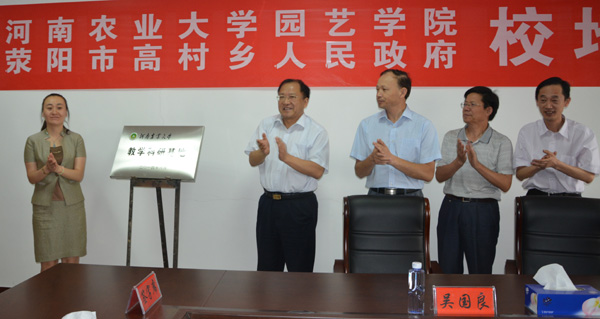 我院与荥阳市高村乡人民政府以河阴石榴产业发展为载体,建立产、学、研、发长期合作关系,是我院为提高人才培养质量、增进与地方政府合作交流的重要方式,同时也是我院和地方政府联合发展地方经济的重要途径,通过校地合作,实现优势互补和资源的高效利用,为中原崛起、中原经济的腾飞做出更大贡献。