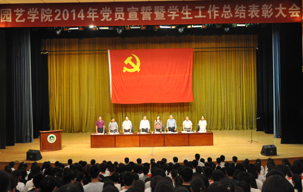 在校大礼堂隆重举行了2014年党员宣誓暨学生工作总结表彰大会。校党委组织部部长杨志清,校学生工作部副部长张红阳,学院全体教职工、在校学生参加本次表彰大会。大会由院长冯建灿主持。
