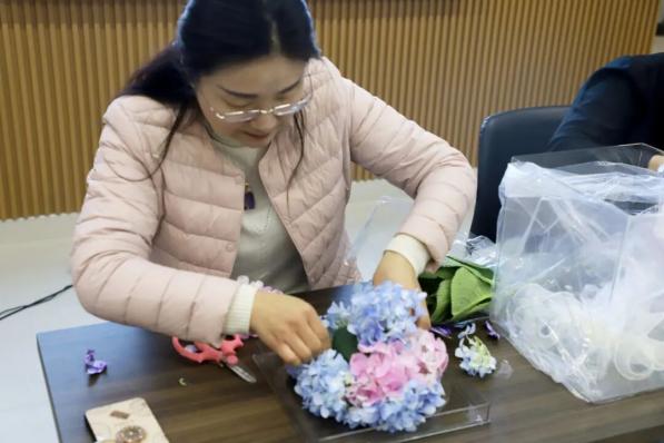 活动过程中,女教师们兴致盎然、认真投入,相互交流创作心得,现场欢声笑语不断。大家纷纷表示,此次活动兼具趣味性与观赏性,既感受到了花艺创作的乐趣,也在忙碌的工作之余放松了身心、增进了情谊。