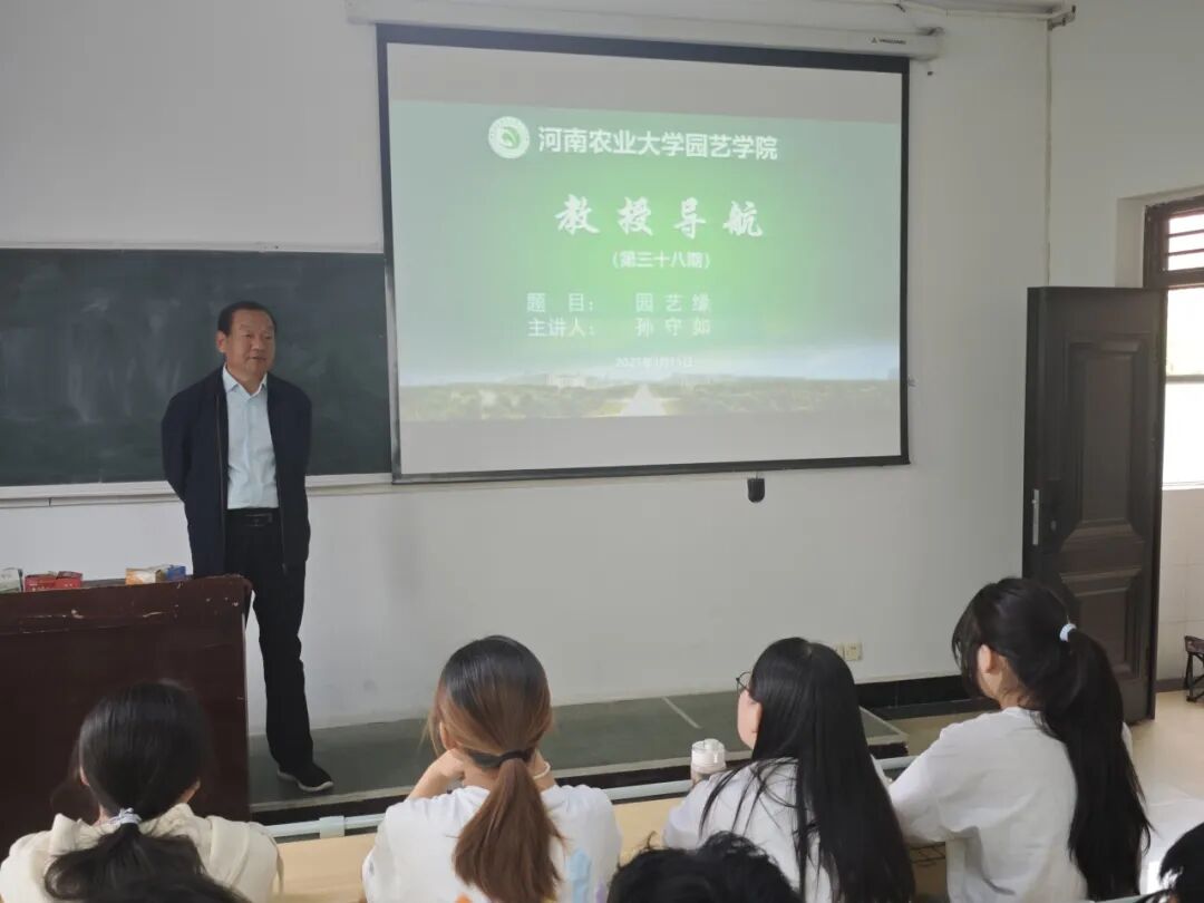 第三十八期“教授导航”专题讲座于桃李园208教室顺利举办。此次讲座由我院蔬菜系孙守如教授担任主讲,以“园艺缘”为题给园艺类24-1班的学生们展开了一场别开生面的讲座。