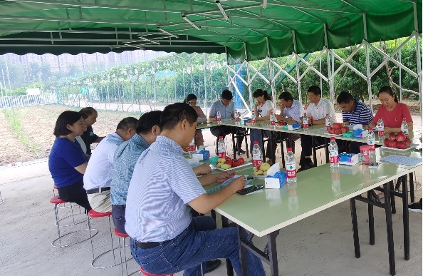 副院长郑先波教授对基地的基本情况以及自主选育的品种进行了介绍,双方就栽培技术、果树病虫害管理等方面进行了现场交流。