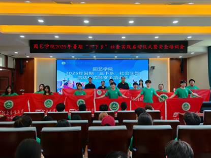 于龙子湖校区力行楼北209报告厅举办2025年暑期“三下乡”社会实践活动启动仪式暨安全培训会。院党委副书记余果、院团委书记冯帅、院团委副书记丁坤、2024级辅导员何静出席, 2023级、2024级社会实践团队代表参与,活动由冯帅主持。