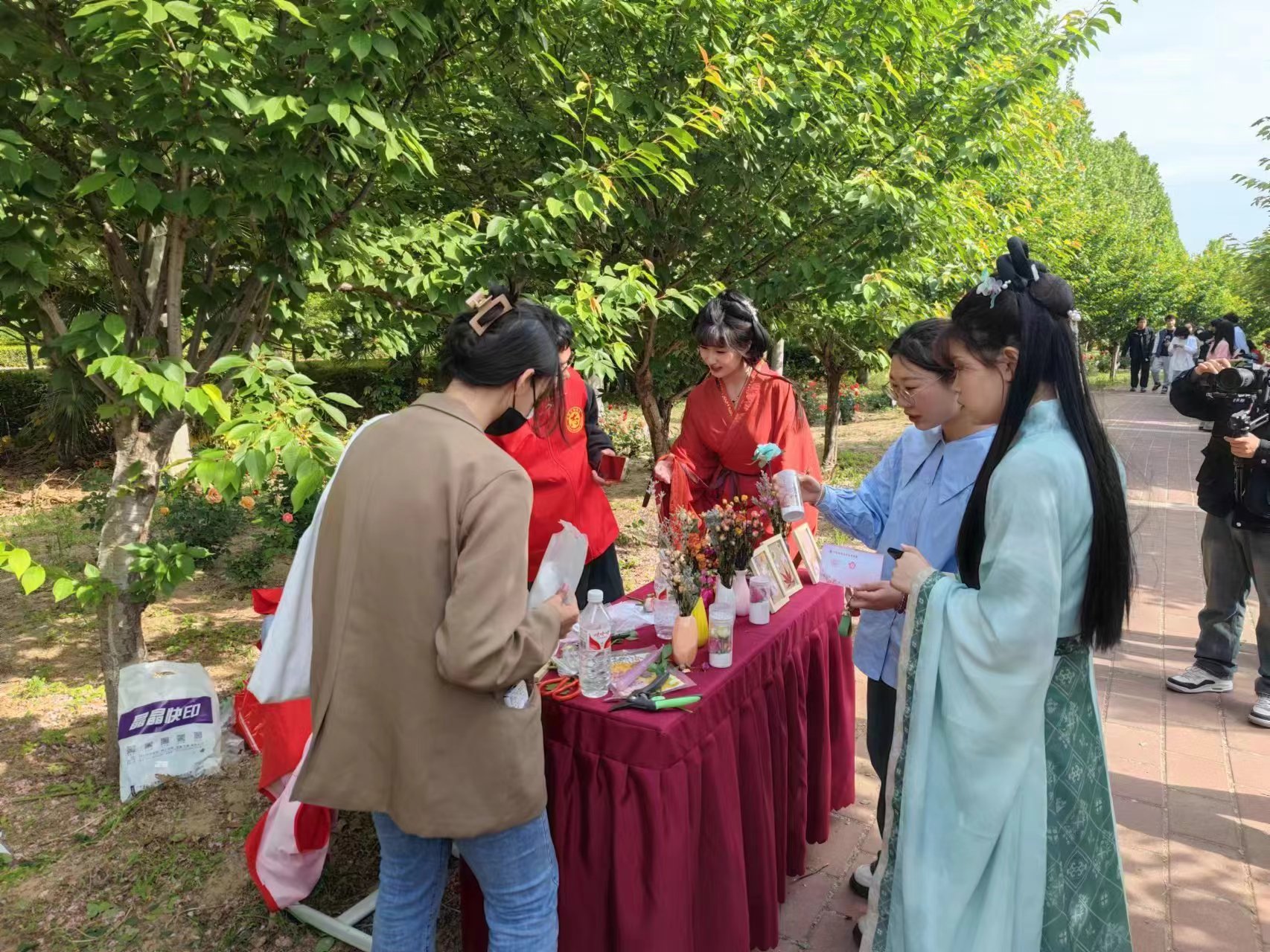 月季文化节现场活动形式丰富多彩,微风徐徐中看花,脚步缱绻时赏茶。活动设有月季科普长廊、汉服游园会、花卉相关手工互动等一系列实践活动。同学们漫步在布满月季花香的小道上,亲手制作植物画、仿生花以及月季雕塑,在趣味活动中更好地了解月季的种植技艺、品种分类以及花期调控等知识。现场同学纷纷表示,这不仅是一次知识的盛宴,更是一次实践的舞台。月季文化节系列活动为学生学习、交流提供平台,同时也于月季种质资源保护、创新利用研究及科普宣传有重要意义。(撰文/董欣媛 核对/丁坤 审核/毛会坡 发布/董欣媛)
