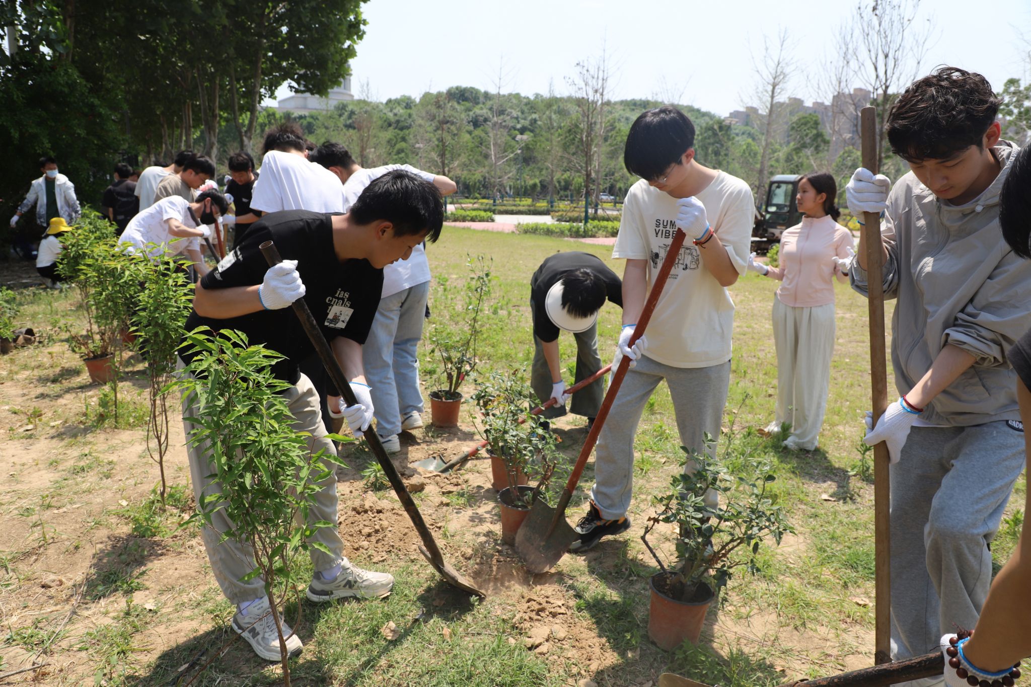 与外国语学院的代表教师、青马班成员以及拟发展对象齐聚一堂,进行了简短的介绍。紧接着,薛东齐对月季资源圃的来源和建设进行了详细的介绍,同学们在薛东齐的讲解中对月季的外形及栽培管理技术等方面有了更深刻的认识。随后,薛东齐针对植株搬放、挖坑掘土、浇水等工作为学生们进行了具体的指导,确保学生们在接下来的实践活动中能够安全、高效地进行劳动。