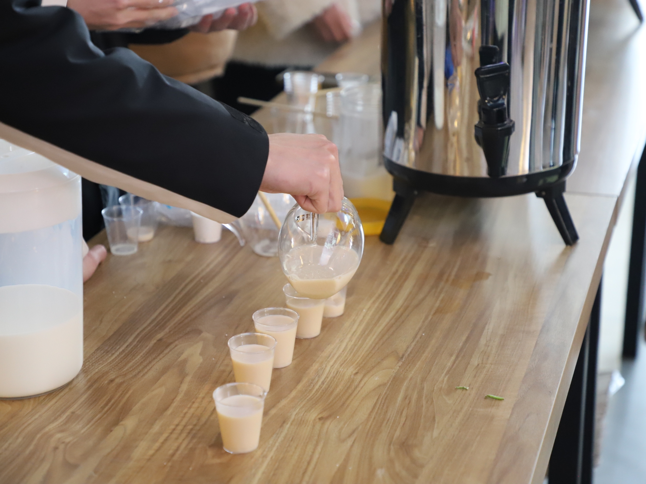 现场人来人往,茶轩社成员们娴熟地展示着泡制奶茶的技艺,茶壶一起又落,杯杯奶茶都浸满了温柔的汤色。同学们品尝茶汤的同时,也驻足聆听社团成员讲述我国浓厚悠久的茶文化。另外,茶轩社还准备了丰富多样的茶叶茶包作为赠品,每一份茶包都承载着学院对女生们健康美丽、恬淡生活的美好祝愿。