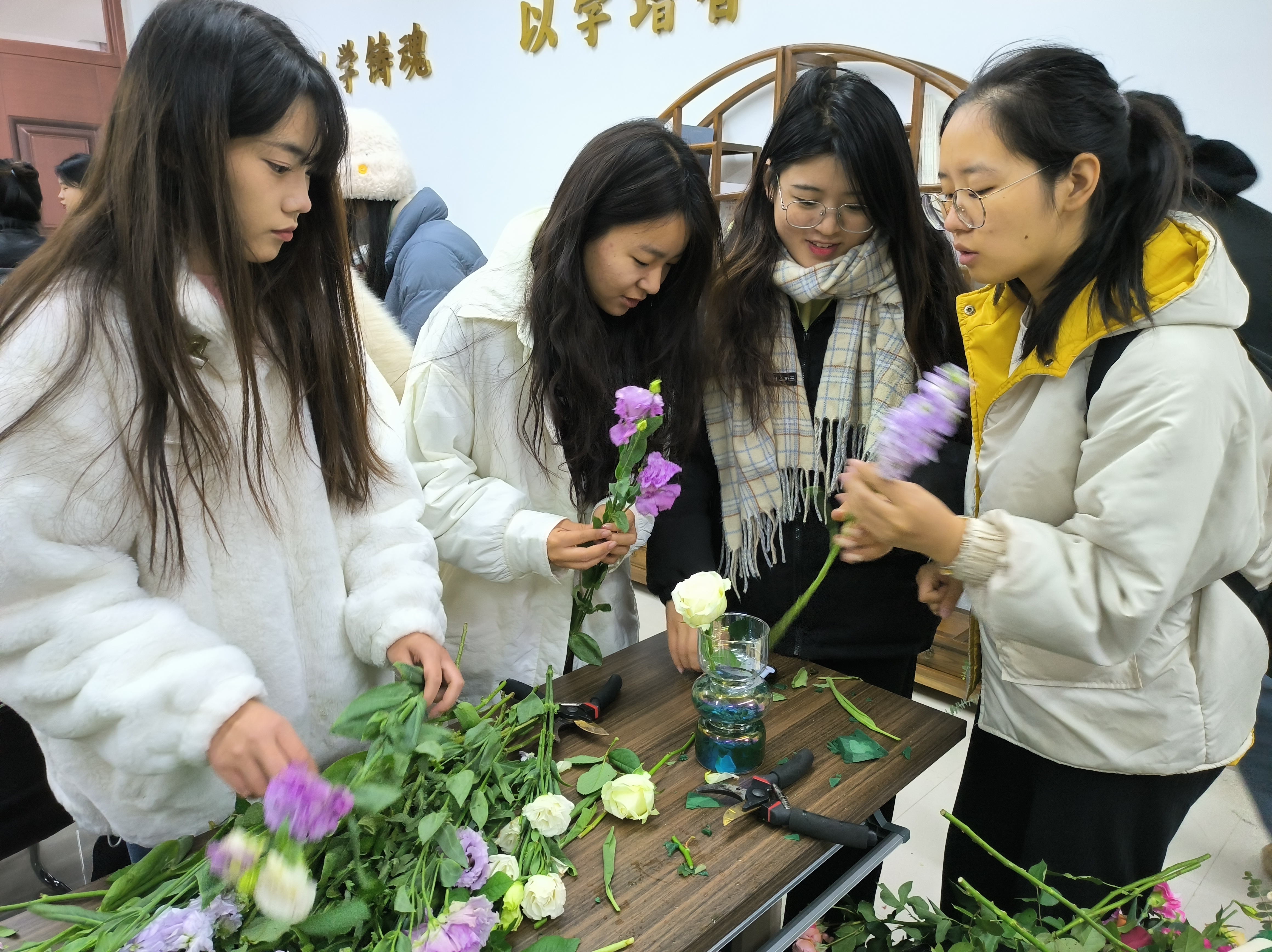 于2023年11月10日中午在力行楼北211教室举办“沉浸学科文化 行走思政课堂”之“东方插花艺术欣赏与体验”活动。
