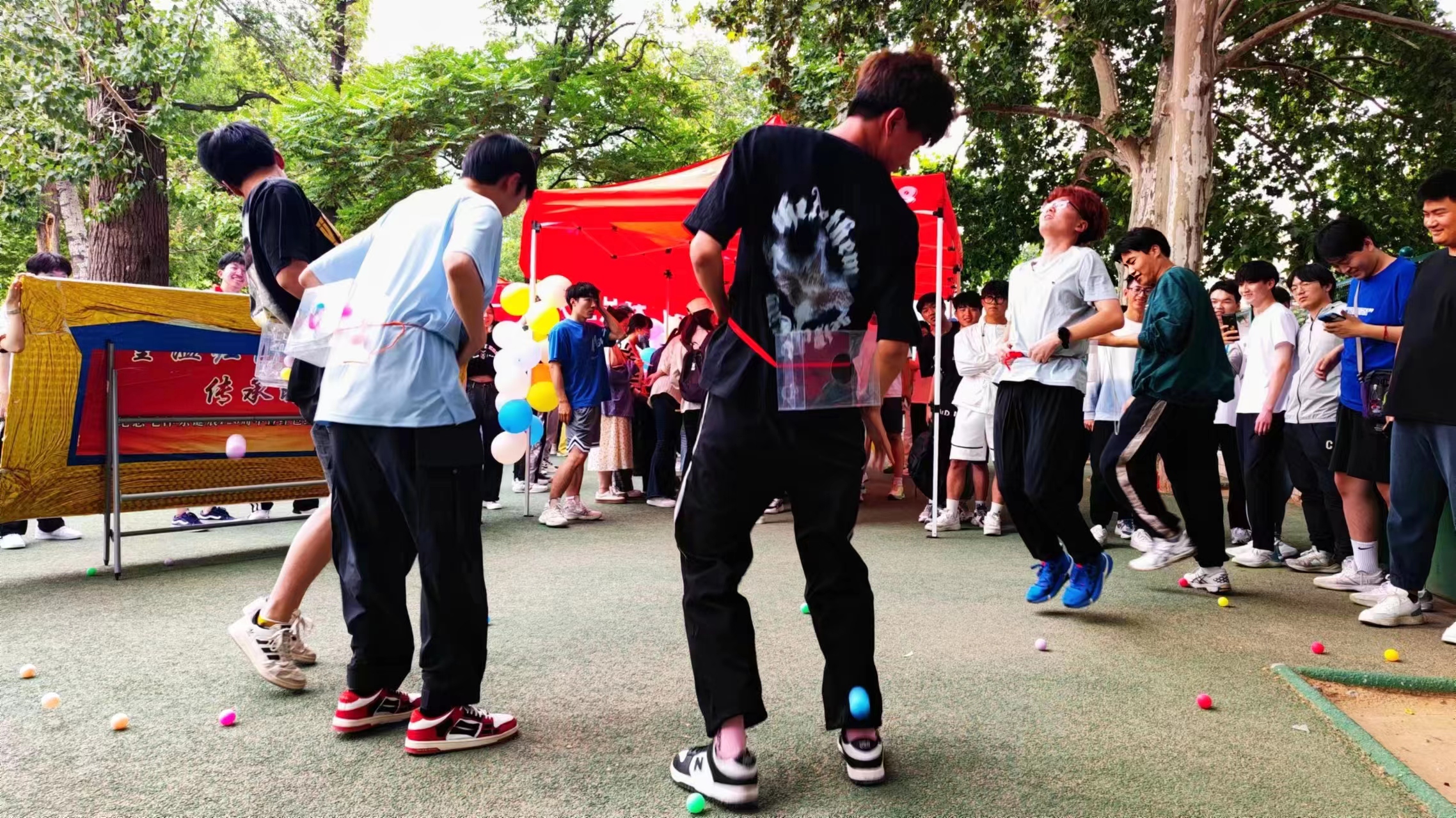 下午四点,“为心赋能,逐梦前行”主题心理健康游园会正式拉开序幕,此次活动分为快乐体验区和心理分享区两个模块。开幕式结束后,各院同学积极参与快乐体验区活动,活动包括两人三足踩气球、抖臀达人、疯狂毛毛虫、合力建塔、同心击鼓、铅笔套圈、龟兔赛跑、愤怒的小鸟、快乐大锤、十拿九稳共十项,同学们在游戏中齐心协力,为团队荣誉努力做到最好。在心理分享区,同学们参与心语、21天打卡、‘寻找你 拥抱你’和心理知识竞赛等活动。同学们每参加一个活动可以获得一个印章,入场券上集够五个印章可参加最后的抽奖活动。本次游园会活动现场热闹非凡,同学们纷纷在游戏中放松自我,尽情欢笑。