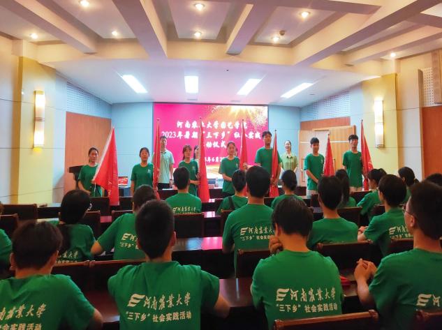 暑期“三下乡”社会实践校级、院级团队和负责人名单,并由领导、老师为校级社会实践团队授旗。随后,团委副书记丁坤从征稿范围、素材要求、投稿内容、投稿渠道等方面为同学们详细介绍了本次活动投稿的要求,也希望同学们能够通过这次机会走出校园,展示出自己积极进取、健康向上的良好风貌。紧接着,院党委副书记毛会坡从“什么是‘三下乡’”“‘三下乡’的起源”这两个问题出发,结合习近平总书记给中国农业大学科技小院的回信精神,鼓励同学们以受教育、长才干、做贡献为宗旨,积极深入基层一线,投身于火热的社会实践当中。最后,毛书记对同学们提出了三点要求:一是不怕吃苦,躬身实践;二是立足专业,发挥优势;三是牢牢树立“安全第一”的思想。希望大家多思考多实践,志存高远、脚踏实地,为农村振兴贡献自己的力量。
