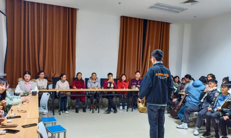 活动中,贺巍老师,张芬老师及班秋艳老师分别为大家讲解了本次茶会挑选的六大类茶的代表茶:信阳毛尖,茯砖,寿眉,大叶青,滇红,大红袍。贺老师对六类名茶的产地、功效、汤色、滋味依次讲解,并由茶轩社学生社团成员担任各茶席席主,为大家一一冲泡茗茶。期间穿插进行了精彩的长嘴铜壶表演,现场气氛十分活跃。19级茶学的同学们发挥才艺,为大家带来了多首合唱歌曲,以及吉他弹唱和相声表演,老师和同学们互动不断,学长学姐与新生们其乐融融,大家品茶赏茶,共同感受茶叶的魅力。