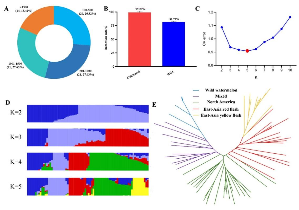 传统的分子标记技术(如SSR和SNP标记)尽管在遗传多样性分析和分子标记辅助育种中得到了广泛应用,但其存在通量低、成本高、灵活性不足等技术局限性。相比之下,基于靶向测序基因型检测(Genotyping by Target Sequencing, GBTS)技术的液相芯片,作为一种新型高效基因分型平台,具有高度的灵活性、检测效率、高通量以及低成本等显著优势。GBTS技术在西瓜中的开发与应用,能够显著提升西瓜种质资源的基因分型效率,降低育种成本,并加速育种进程的优化与创新。