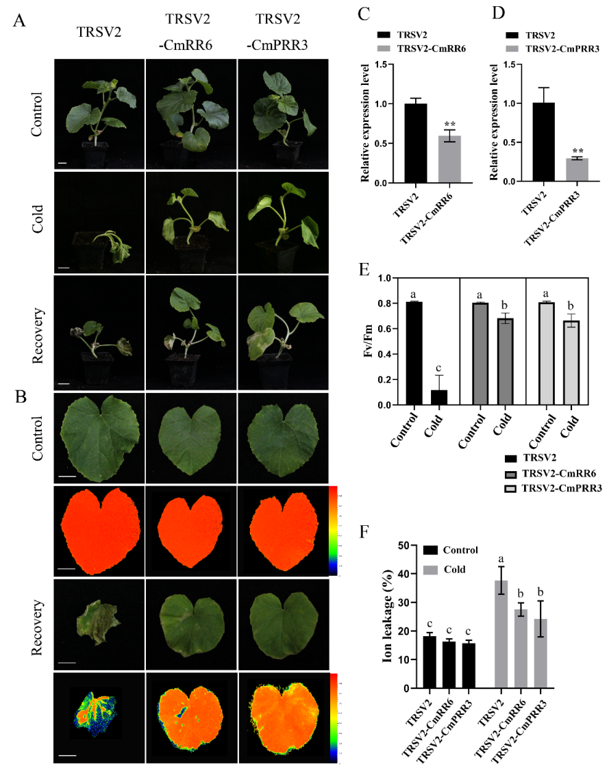 图1:CmRR6和CmPRR3沉默植株的耐冷性鉴定