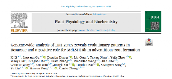 苹果逆境生物学与简约技术栽培体系团队在国际知名学术期刊Plant Physiology and Biochemistry(中科院二区TOP,影响因子6.1)上发表了题为"Genome-wide analysis of LSH genes reveals evolutionary patterns in Rosaceae and a positive role for MdLSH10b in adventitious root formation"的研究论文。该研究系统解析了蔷薇科LSH家族基因的进化规律,揭示了MdLSH10b通过转录激活MdWOX4a促进苹果不定根形成的分子机制。