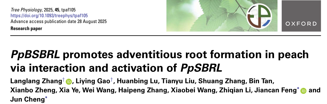 近日,我院桃生物学与种质创新团队在桃不定根形成调控方面取得重要进展。在中科院1区期刊《Tree Physiology》发表研究论文“PpBSBRL Promotes Adventitious Root Formation in Peach via Interaction and Activation ofPpSBRL”。揭示了桃LBD家族基因BSBRL和SBRL调控桃不定根形成的功能及调控机理。