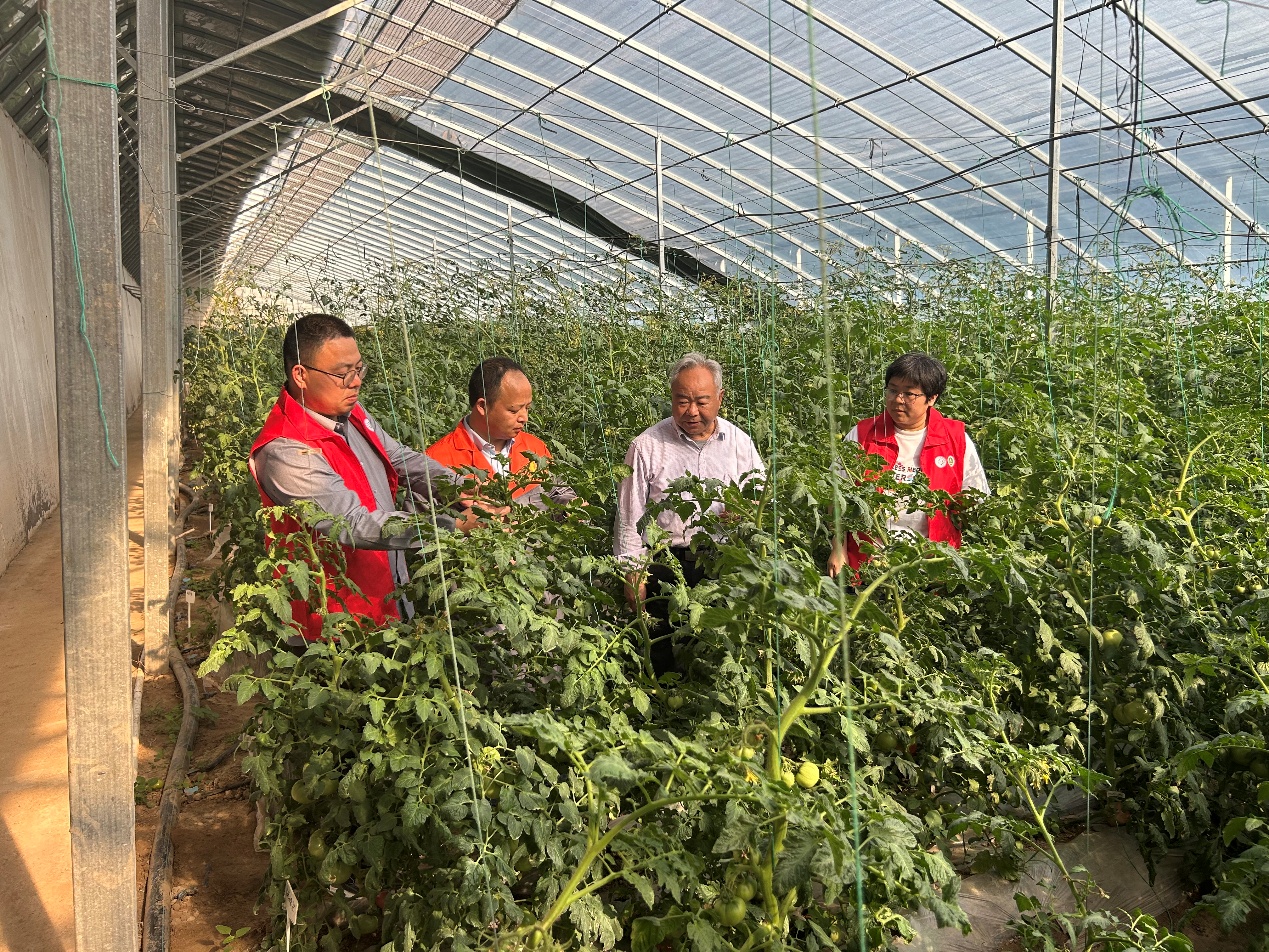 随后,服务团成员走进日光温室西红柿种植大棚,开展常规田间巡诊。在绿意盎然的西红柿种植区,专家团队与一线种植户面对面交流,查看西红柿植株生长、挂果及病虫害防控情况。针对种植户反映的花果管理、提质增效栽培等问题,孙治强教授现场示范讲解关键技术要点,手把手指导种植户优化管理措施,引导种植户持续推行规范化、标准化种植模式;同时结合电商销售对农产品品质、规格的要求,帮助种植户打造适配电商渠道的优质西红柿产品。